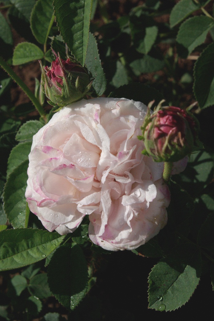 Die zartrosa bis fast weiße Moosrose, die sich mit Alfred de Dalmas um den Namen streitet.